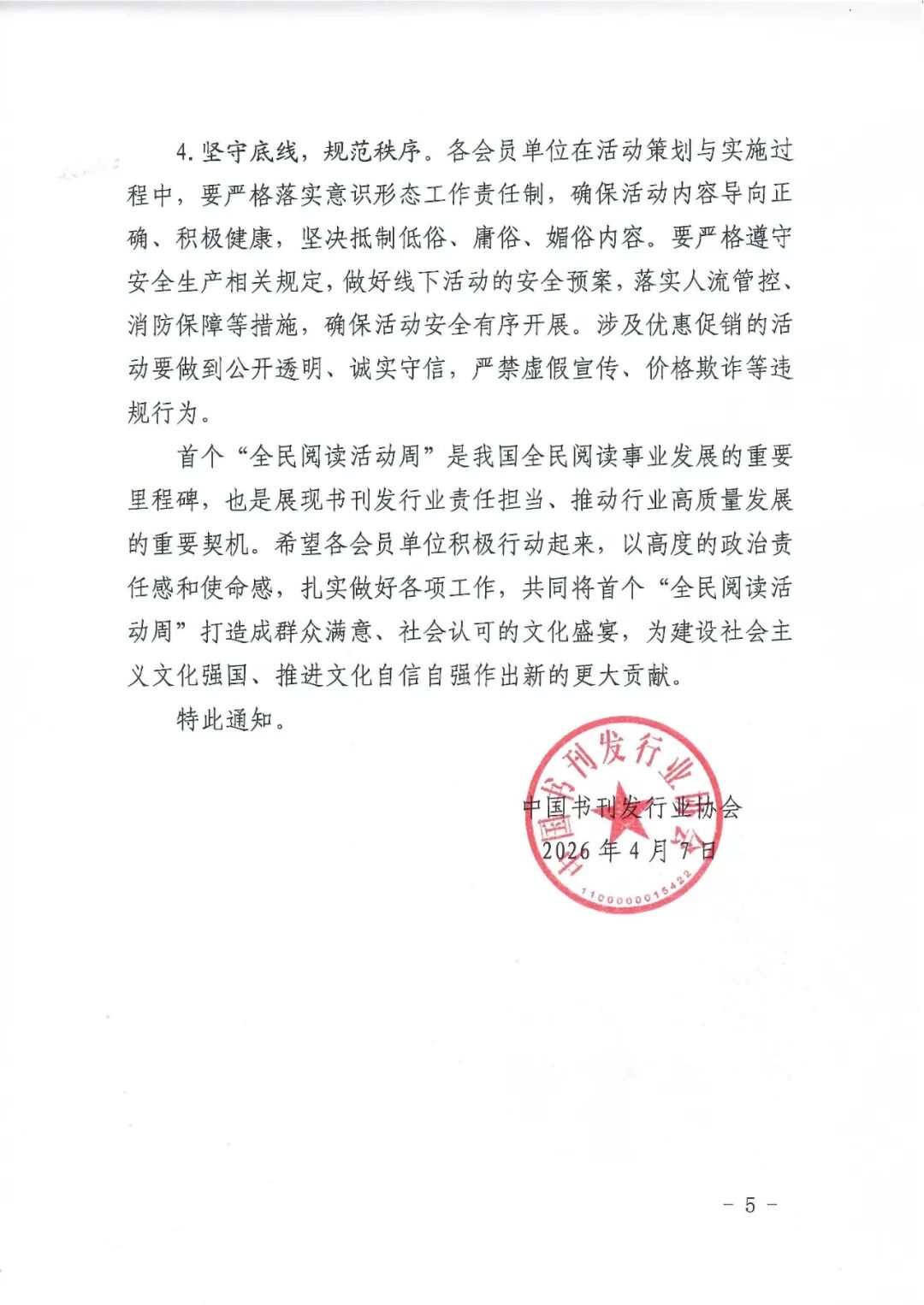 4.坚守底线,规范秩序。各会员单位在活动策划与实施过程中,要严格落实意识形态工作责任制,确保活动内容导向正确、积极健康,坚决抵制低俗、庸俗、媚俗内容。要严格遵守安全生产相关规定,做好线下活动的安全预案,落实人流管控、消防保障等措施,确保活动安全有序开展。涉及优惠促销的活动要做到公开透明、诚实守信,严禁虚假宣传、价格欺诈等违规行为。