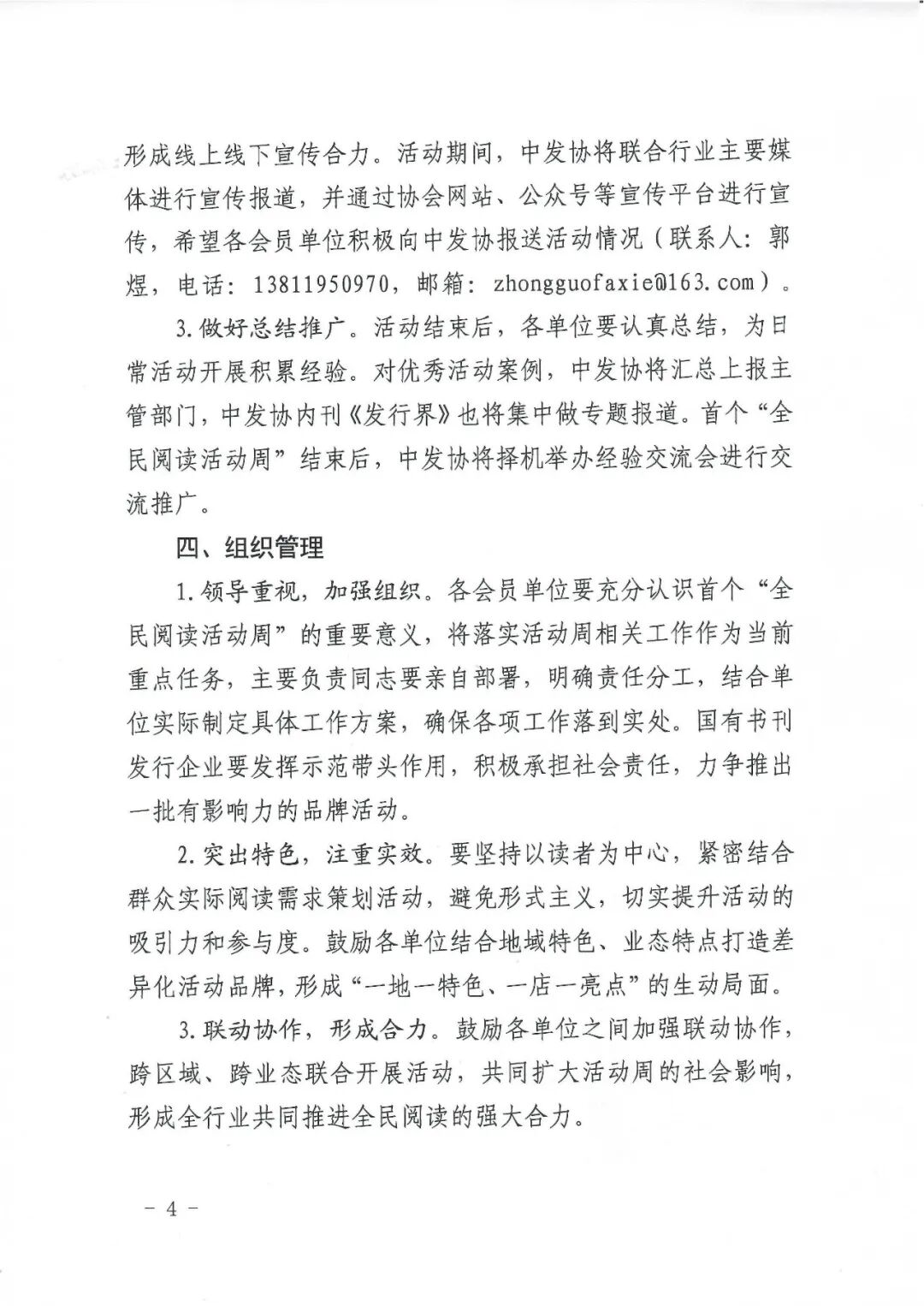 3.联动协作,形成合力。鼓励各单位之间加强联动协作,跨区域、跨业态联合开展活动,共同扩大活动周的社会影响,形成全行业共同推进全民阅读的强大合力。