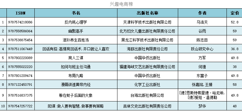心理疗愈类图书持续保持较高热度。在收入预期下降、压力增大的背景下,公众对心理调节的关注度提升。一些以“突破情绪控制”为主旋律的心理自助类图书热度居高不下,旨在协助读者化解内心冲突的《反内耗心理学》《躲在蚊子后面的大象》在本期均进入总销量榜和兴趣电商榜前10名。家校共育理念深入人心,相关图书在开学前夕热销。学校作为孩子成长的重要场所,除承担着知识教授的显性职能外,还肩负着促进学生素质提升、全面发展等隐性责任,越来越多的家长认识到与学校增强沟通以形成教育合力的重要性。《如何与班主任沟通》自2020年6月上市以来首次进入兴趣电商榜单前列,且在总销量榜中跻身第6名。该书的热销一方面与9月开学在即有关,另一方面也离不开短视频算法的精准推送(90%以上销量来自短视频电商渠道)。
