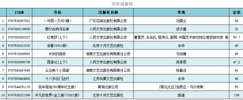 「注:开卷榜单数据基于开卷“图书零售市场观测系统”中采样书店,选择大部分线下渠道和部分线上渠道建立样本框之后,再进行销量计算获得,具有很强的代表性、连续性和中立性。